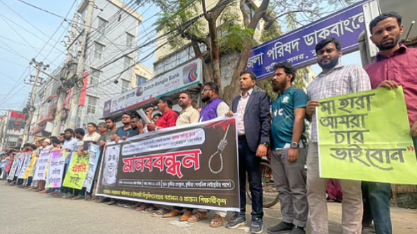 কুষ্টিয়ার ইসলামী বিশ্ববিদ্যালয়–এর নিহত শিক্ষক আসমা সাদিয়া রুনা–র হত্যার বিচার দাবিতে মানববন্ধনে আবেগঘন আকুতি জানিয়েছে তাঁর ছোট্ট সন্তানরা। আজ শনিবার সকালে কুষ্টিয়ার কুষ্টিয়া প্রেসক্লাব–এর সামনে আয়োজিত মানববন্ধনে ১০ বছর বয়সী
