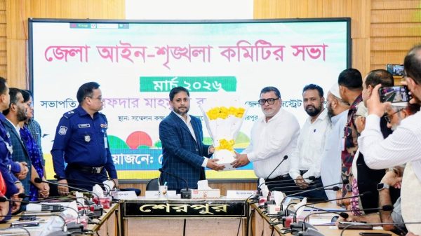 শেরপুরে আইন-শৃঙ্খলা কমিটির সভা: ঈদকে সামনে রেখে নিরাপত্তা জোরদারের নির্দেশনা শেরপুরে জেলা আইন-শৃঙ্খলা কমিটির মার্চ মাসের মাসিক সভা অনুষ্ঠিত হয়েছে। রবিবার (৮ মার্চ) জেলা প্রশাসকের কার্যালয়ের সম্মেলন কক্ষে আয়োজিত এ