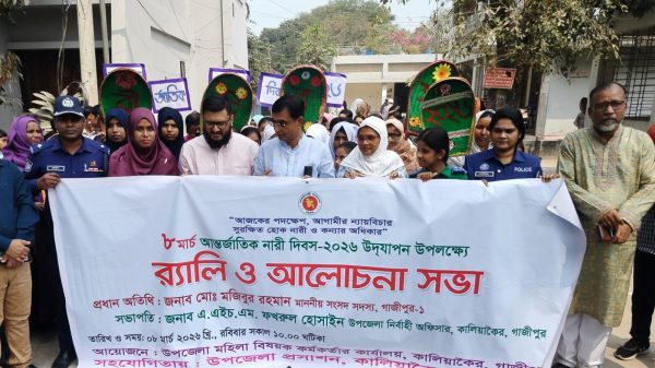 গাজীপুরের কালিয়াকৈরে যথাযোগ্য মর্যাদায় আন্তর্জাতিক নারী দিবস উপলক্ষে র্্যালী ও আলোচনা সভা অনুষ্ঠিত হয়েছে। রবিবার সকালে কালিয়াকৈর উপজেলা মহিলা বিষয়ক অধিদপ্তরের আয়োজনে একটি বর্ণাঢ্যর্্যালী অনুষ্ঠিত হয়। পরে উপজেলা পরিষদের হল