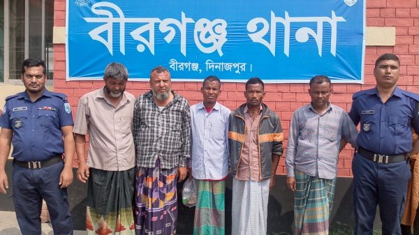 দিনাজপুরের বীরগঞ্জ উপজেলায় গভীর রাতে পুলিশের বিশেষ অভিযানে জুয়ার আসর ভেঙে দিয়ে ৫ জনকে গ্রেফতার করা হয়েছে। এ সময় পুলিশের উপস্থিতি টের পেয়ে আরও ৪ জন পালিয়ে যায়। পুলিশ জানায়,